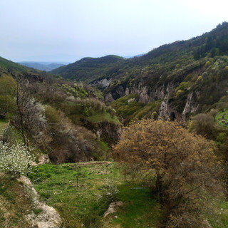 Jeudi 14 avril: Réveil dans notre lit king size de l’hôtel, ça change des dernières nuits en tente! La mission de la matinée: se rendre à l’ambassade d’Iran et y récupérer notre visa. Cette fois nous espérons que ça sera la bonne. La semaine dernière nous nous y étions déjà rendus mais leur système ne fonctionnait pas… Aujourd’hui, c’est une victoire! Nous avons notre visa! Ensuite direction la station de bus pour se rendre au monastère de Ghérart, encore un. Celui ci est particulier avec son église à moitié troglodyte où une source jaillit de la roche. Les sculptures ne ressemblent absolument pas à l'art chrétien auquel nous sommes habitué . Deux énormes lions taillés dans un marbre sombre porte un aigle qui tient dans ses serres un boeuf. L'oeuvre est impressionnante ! Puis retour en stop à notre logement que nous partageons avec deux familles russes qui ce sont réfugiées ici suite à la guerre.